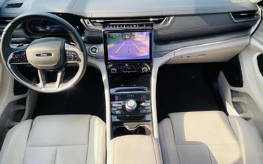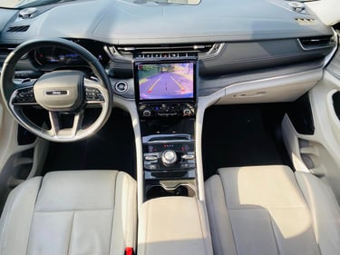Intérieur Luxueux et Spacieux : À l'intérieur, la Grand Cherokee L Overland offre un niveau exceptionnel de luxe et de confort pour les passagers. Les matériaux haut de gamme, tels que le cuir Nappa et le bois véritable, créent une ambiance raffinée et accueillante. Les sièges avant chauffants et ventilés offrent un soutien optimal, tandis que la troisième rangée de sièges permet d'accueillir confortablement jusqu'à sept passagers.