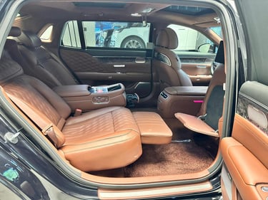 La Genesis G90 LWB (Long Wheelbase) est une voiture de luxe de la marque Genesis, qui est la division de luxe de Hyundai. La G90 est la berline phare de Genesis, et la version LWB offre une expérience de conduite encore plus luxueuse grâce à son empattement allongé, offrant ainsi plus d'espace pour les passagers à l'arrière.